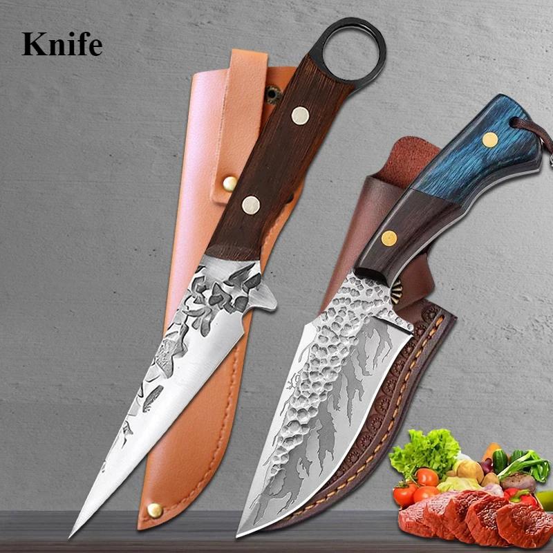 2 шт./компл. кухонные ножи из нержавеющей стали, нож для мяса, кованый нож для обвалки, нож для барбекю, рыбалки, мясника с ножнами