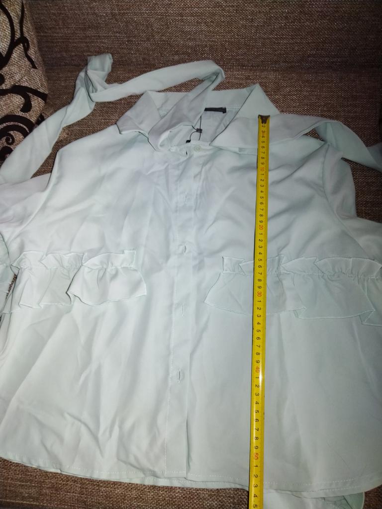 Необычный, интересный дизайн блузки. Ткань х/б, Воланы немного грубовато смотрятся, тесемки для банта толстоватые. После стирки и отпаривания смотрится шикарно! Но бант получается слишком большой. Дочери нравится! Спасибо Джум 🩷