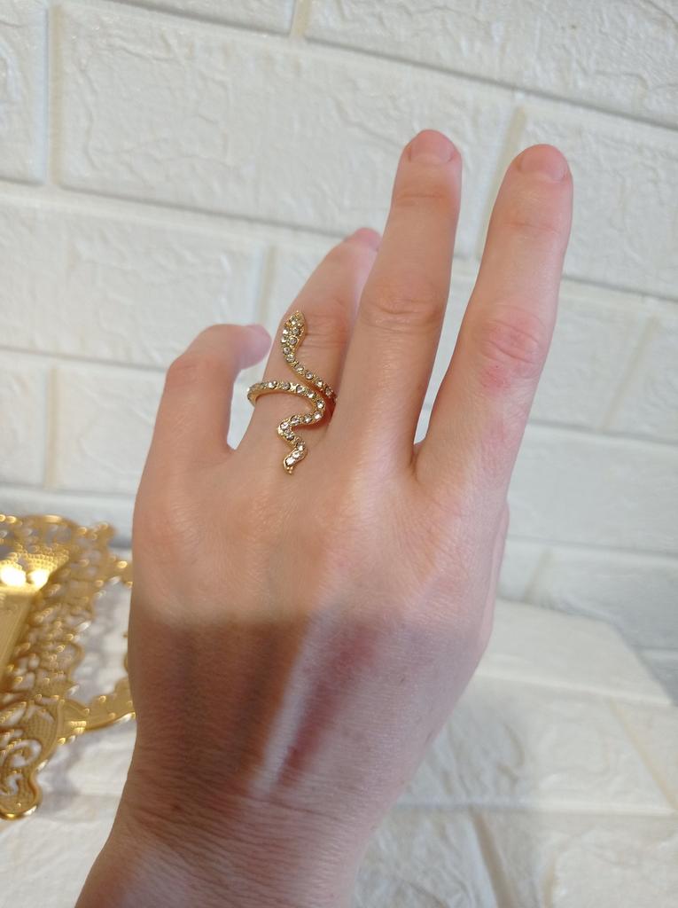 Кольцо в виде змеи — стильное и необычное украшение, которое не только привлекает внимание, но и несет глубокий символизм. Считается, что змея олицетворяет мудрость, силу и возрождение. Серебристый цвет добавляет украшению элегантности и универсальности, делая его подходящим для повседневных образов и торжественных мероприятий. 🔸Изящная форма змеи, которая словно обвивает палец. 🔸Детали выполнены с высокой точностью: голова и тело змеи имеют аккуратные изгибы, а стразы, инкрустированные вдоль корпуса, придают изделию блеск и утонченность. Блестящие камни создают игру света, делая кольцо заметным, но не кричащим. 🔸Кольцо отличается гладкой внутренней поверхностью, что обеспечивает удобство в носке. Оно лёгкое, не утяжеляет палец. 🔸Цена качеству соответствует. Рекомендую 👍 Ставлю ⭐⭐⭐⭐⭐ Большое спасибо продавцу ❤️ и Joom ❤️