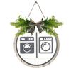 Деревянный гендерный тег Yousheng, знак для туалета, прачечной с бантом, деревенский подвесной знак с искусственными зелеными листьями для декора ванной комнаты и прачечной