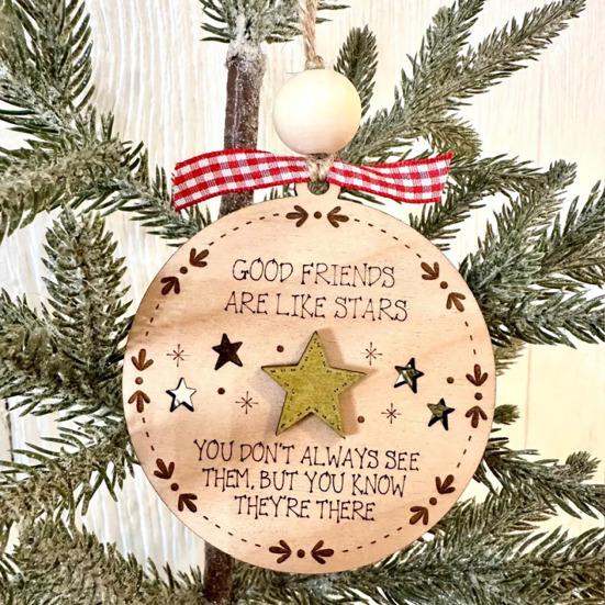ПРИНИМАЙТЕ ДУХ ДРУЖБЫ: Отпразднуйте суть товарищества и общения, интегрировав это очаровательное деревянное подвесное украшение в ваш праздничный декор, излучающее тепло, благодарность и чувство принадлежности к близким.