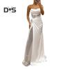 Это высококачественное женское платье изготовлено из мягкого и удобного полиэстерового материала с превосходной эластичностью.. Платье имеет стильный верх бандо и поясную конструкцию, дополненную А-силуэтом, который подчеркивает вашу фигуру.. Разрез и сетчатая отделка придают элегантный штрих общему образу..