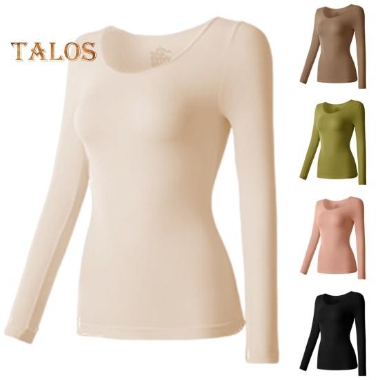 Стильный дизайн: Эти термотопы однотонного цвета, с круглым вырезом и длинными рукавами не только модные, но и универсальны, идеально подходят для различных вариантов укладки.