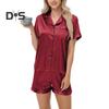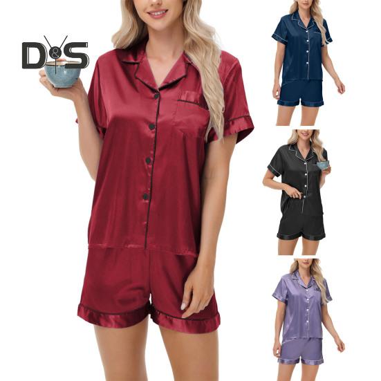 Побалуйте себя роскошным комфортом с этим изысканным женским пижамным комплектом.. Эти пижамы, изготовленные из высококачественной атласной ткани, созданы для максимального расслабления.. Верх пижамы имеет классический воротник-стойку, застежку на пуговицы спереди, V-образный вырез и контрастную окантовку для придания нотки элегантности.. Удобный нагрудный карман позволит вам легко хранить необходимые мелочи.