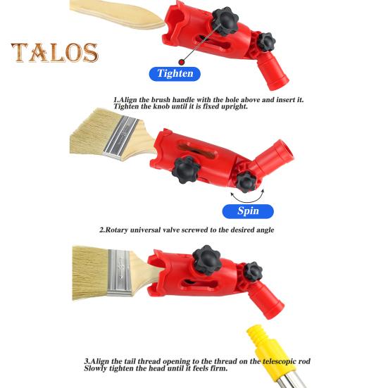 Благодаря сегментированным телескопическим штангам добраться до высоких стен и потолков не составит труда.. В комплект входит кисть, красный многоугольный удлинитель и удлинительная штанга длиной 1,7 м/5,57 фута, что сделает процесс покраски более плавным и эффективным.. Универсальная поворотная регулировка подходит для различных насадок-кистей, а также валиков и скребков.