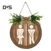 Деревянный гендерный тег туалетная прачечная знак с бантом деревенский подвесной знак с искусственными зелеными листьями для ванной комнаты прачечная декор