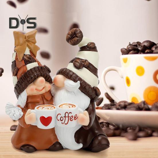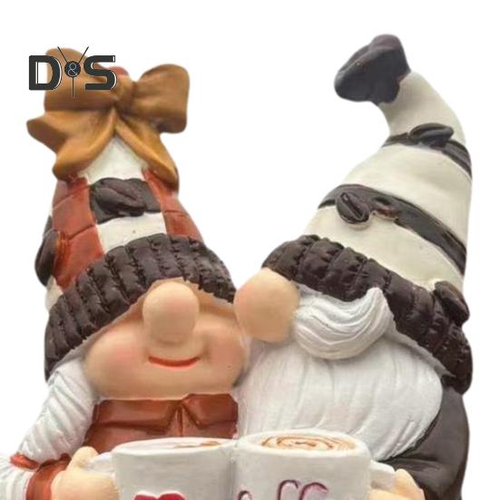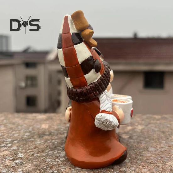 Причудливый дизайн на кофейную тематику: Насладитесь изысканной резьбой и романтическими кофейными аксессуарами этих гномов.. С полосатой шляпой и кофейными чашками в руках они добавят неповторимый штрих любому пространству, превратившись в притягательный центр внимания на каминных полках или столах.