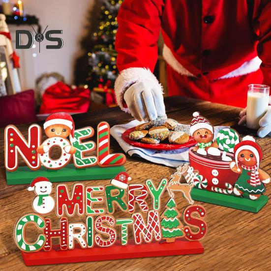 Причудливые пряничные элементы: Воспользуйтесь классическими оттенками красного и зеленого, украшенными очаровательными элементами имбирного пряника, такими как угощения Санты и надписи «Счастливого Рождества».. Пусть эти милые деревянные украшения наполнят ваши собрания сюрпризами и радостью.