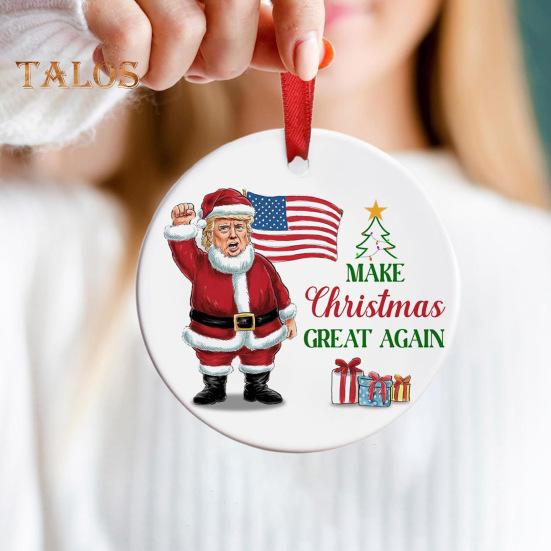 Отпразднуйте праздничный сезон с нашими премиальными двухсторонними рождественскими украшениями Trump 2024. Эти украшения с культовыми лозунгами идеально подойдут сторонникам Трампа и добавят праздничного штриха вашей рождественской елке.. Имея размер 3 дюйма, они выделяются, не перегружая ваш интерьер.. Каждое украшение поставляется в высококачественной коробке для удобства дарения и хранения..