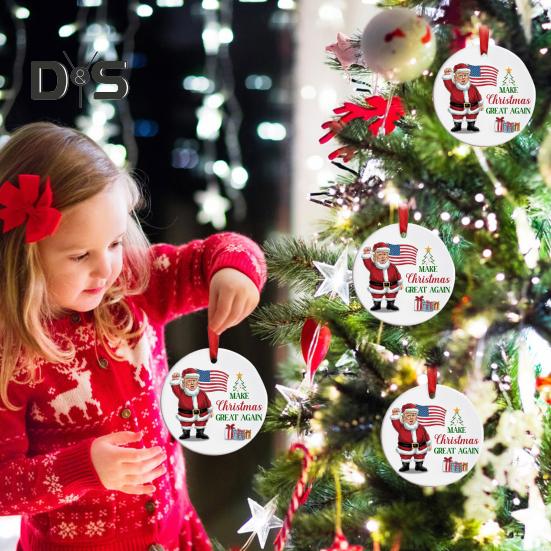 Отпразднуйте праздничный сезон с нашими премиальными двухсторонними рождественскими украшениями Trump 2024. Эти украшения с культовыми лозунгами идеально подойдут сторонникам Трампа и добавят праздничного штриха вашей рождественской елке.. Имея размер 3 дюйма, они выделяются, не перегружая ваш интерьер.. Каждое украшение поставляется в высококачественной коробке для удобства дарения и хранения..