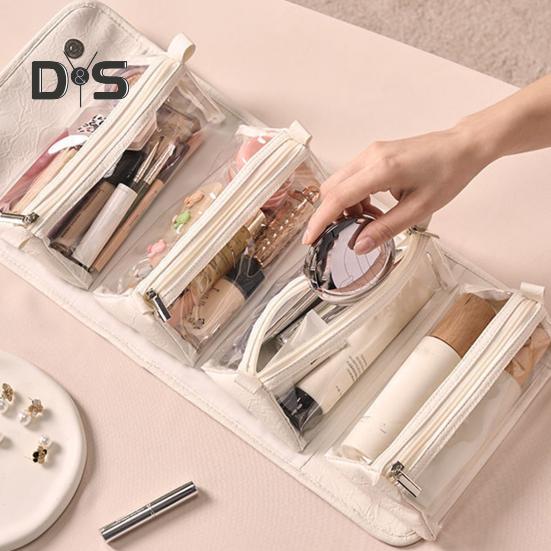 Большая емкость: Раскройте весь потенциал этой стильной косметички с ее вместительным отделением для хранения. Благодаря четырем съемным прозрачным отделениям он легко вместит всю вашу косметику, туалетные принадлежности, средства по уходу за кожей и кисточки для макияжа, что делает его незаменимым спутником в путешествиях или деловых поездках.