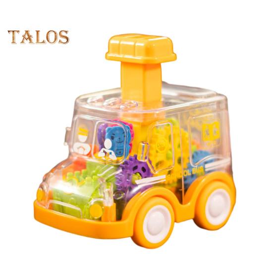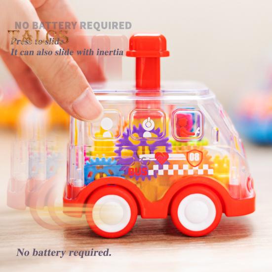 Нажмите, чтобы управлять игрушечной машиной, батарейки не требуются. Детский сад, детская игрушечная машина, прозрачная шестерня, мини-игрушка, школьный автобус, механическая концепция, обучение, день рождения