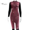 Блестящее ажурное платье со стразами, женское сексуальное пляжное платье с разрезом по бокам, без рукавов, блестки, юбка-бикини для вечеринки