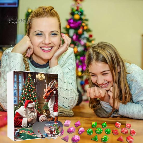 Коллекция красочных игральных костей: Украсьте свой праздничный декор уникальным адвент-календарем с игральными костями, в котором каждый день в декабре появляется яркий кубик, обогащая вашу коллекцию и наполняя каждый день радостью и сюрпризами.