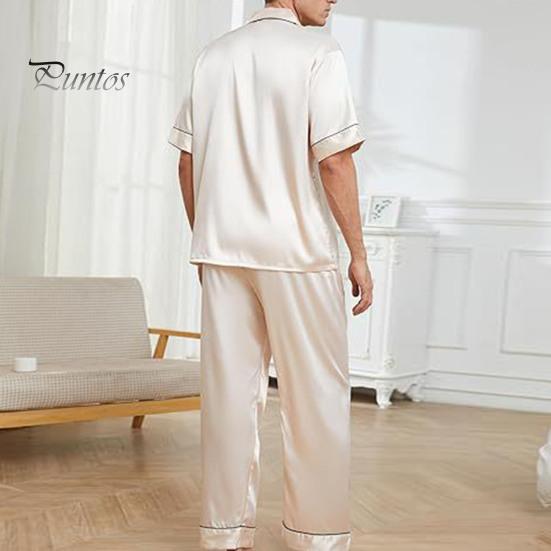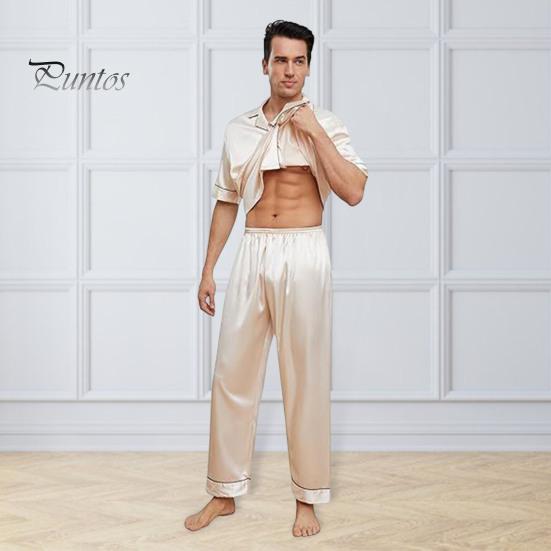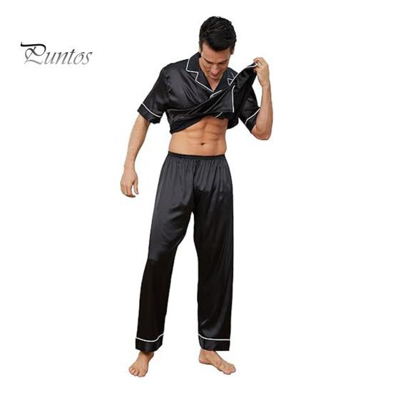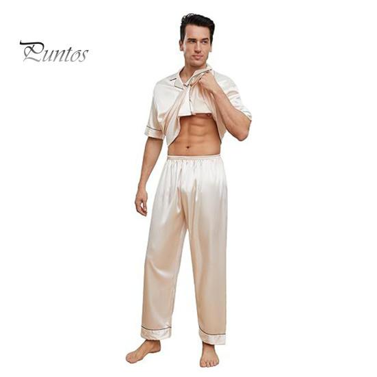 Роскошная атласная ткань: Этот комплект пижамы из двух предметов изготовлен из высококачественной атласной ткани, обеспечивающей мягкость, воздухопроницаемость и легкость, что гарантирует комфортный ночной сон.