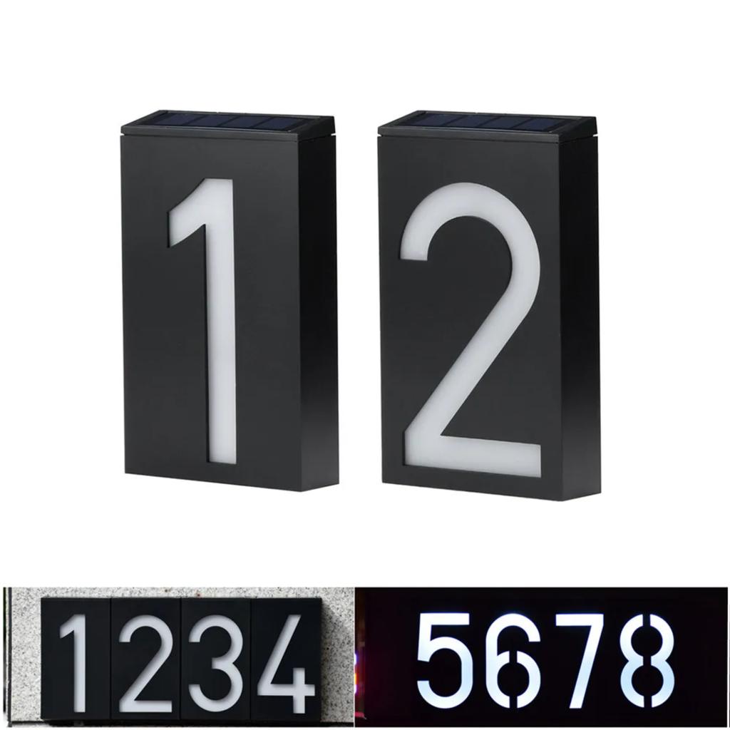 Новый наружный настенный солнечный светодиодный светильник для номера дома, наружное освещение, дверная табличка, автоматическая лампа, крыльцо, светильники с солнечной батареей, номер для