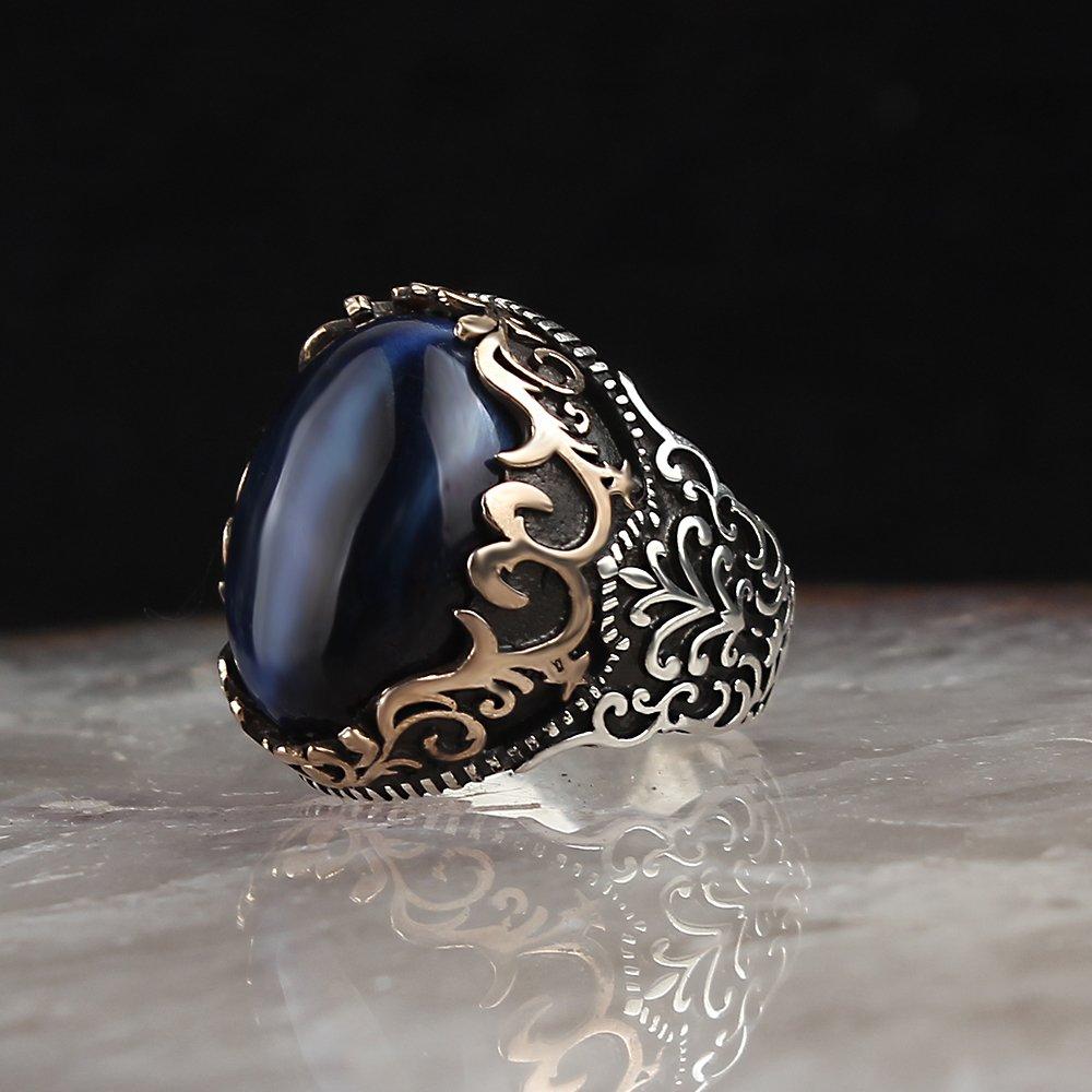Мави Каплангезю Ташли Гюмюш Эркек Юзюк — купить товар онлайн с бесплатной доставкой до всему миру!