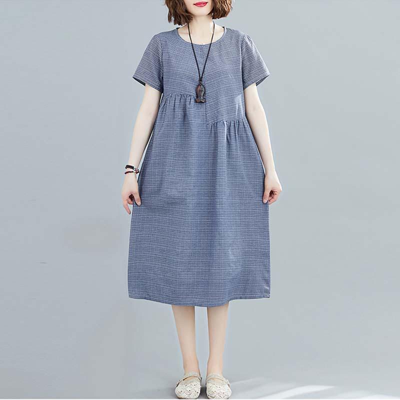 Летнее художественное свободное платье из хлопка и пеньковой сетки с круглым вырезом и короткими рукавами для женщин, средний или длинный стиль — купить товар онлайн с бесплатной доставкой до всему миру!
