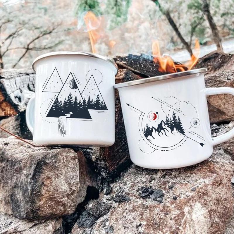 Кружки для кемпинга с принтом «Гора» Кружки для вечеринок у костра Пивные и соковые эмалированные кружки с ручкой «Гора» Кофейные чашки Идеи подарков для кемперов
