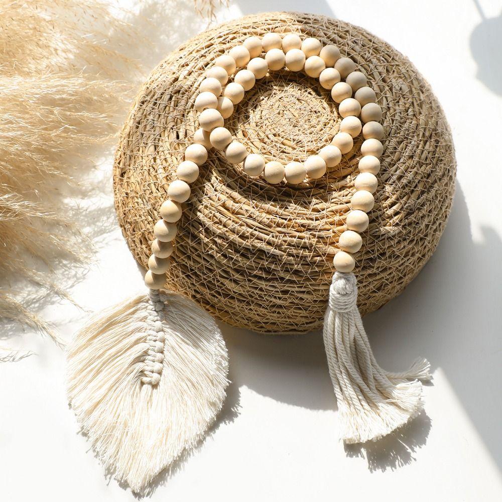 Прочные деревянные завязки для штор в стиле бохо, шнуры для подхвата штор ручной работы, изысканные оконные шторы с орнаментом из деревянных бусин