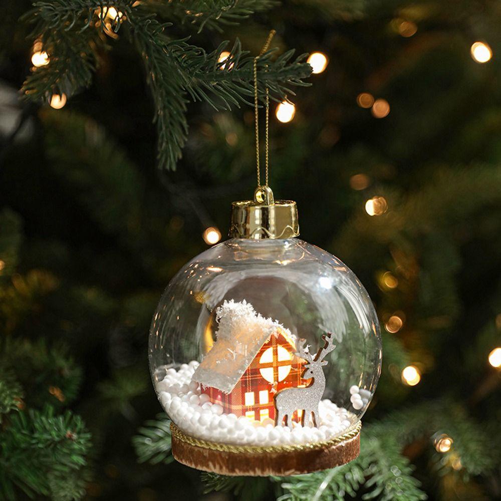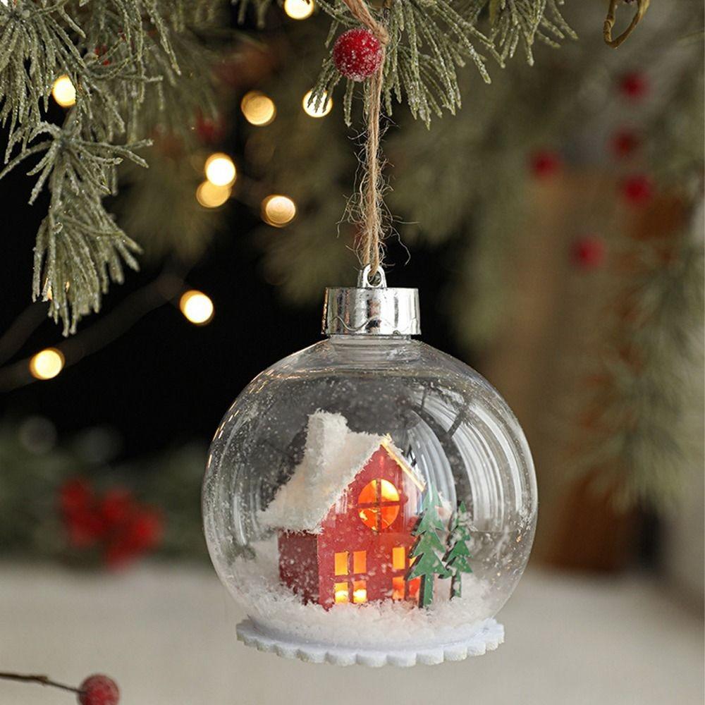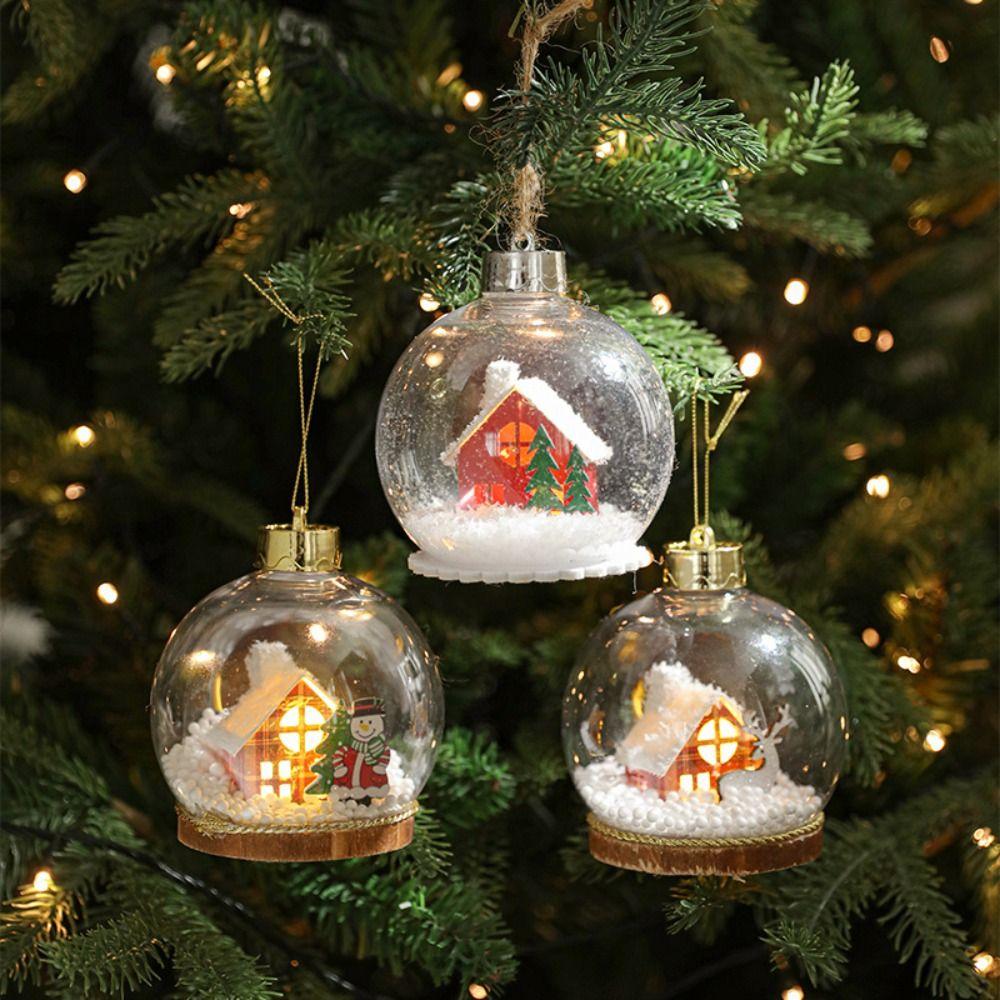 Милые рождественские светящиеся подвесные шары, прозрачные пластиковые подвесные шары для рождественской елки, мультяшные светодиодные светильники, рождественские шары для дома, подвеска
