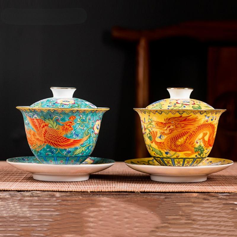 Керамика Санцай Гайвань Чаша Дракон и Феникс Мастер Чашка для чая Ручная работа Эмалевая цветная чаша для чая Высококачественный чайный сервиз Respect