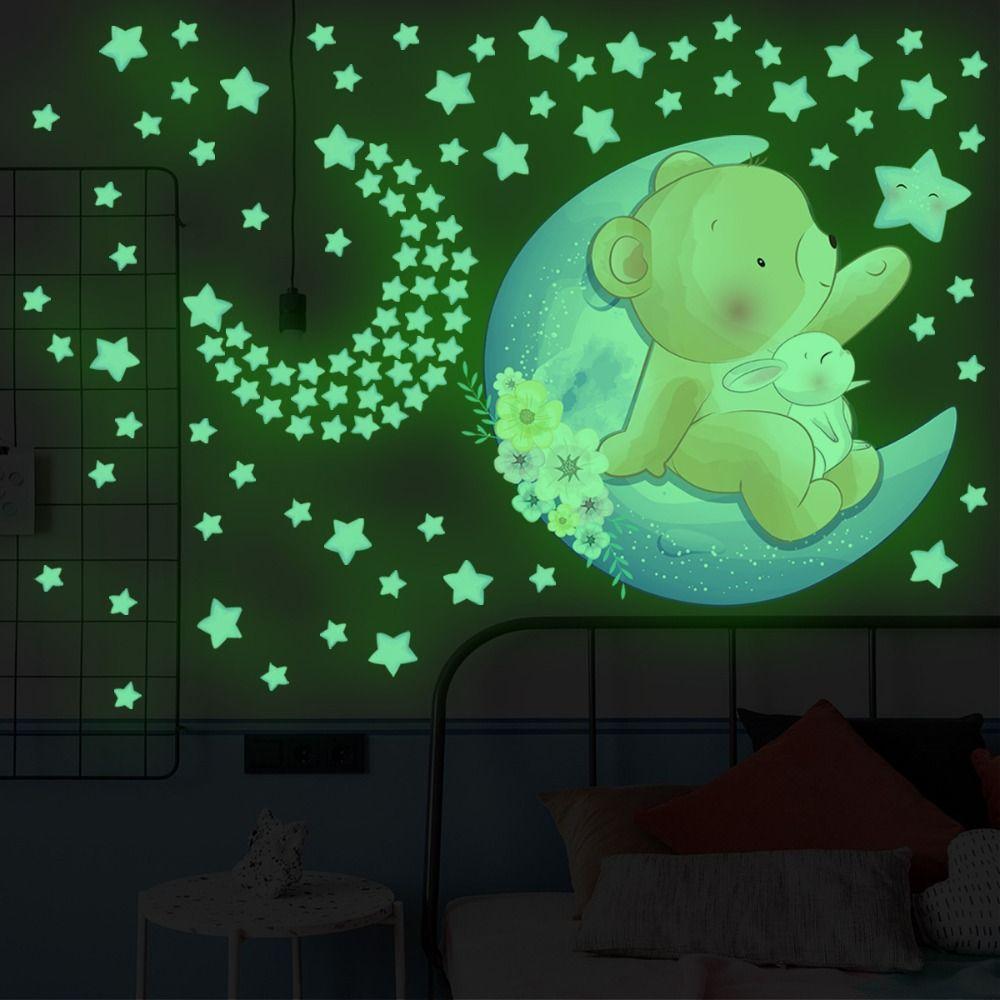 Детская комната Декор Медведь Спальня Потолок Фон Стена Наклейка Слон Обои Ночник Звезда Наклейка Светящиеся Наклейки