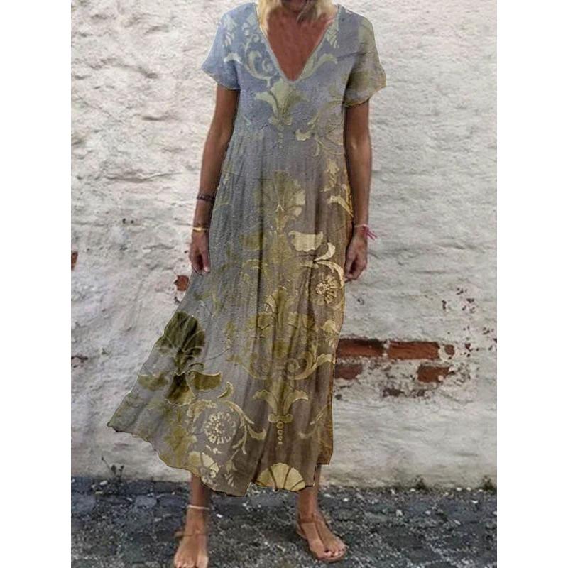 Летнее женское платье с короткими рукавами и V-образным вырезом с принтом — купить товар онлайн с бесплатной доставкой по всему миру!