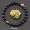 Браслет из натурального желтого тигрового глаза для мужчин и женщин, черный браслет из вулканической лавы, тибетский Будда, эластичная веревка, парный браслет из камня
