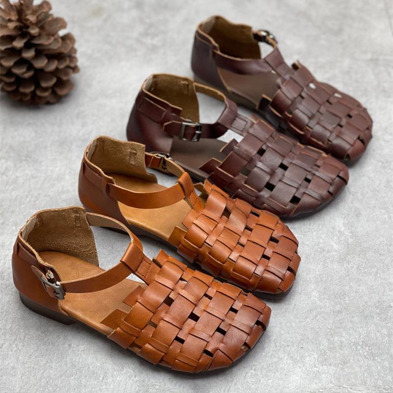 Туфли ручной работы из натуральной кожи с круглым носком, мокасины, повседневные сандалии на мягкой подошве