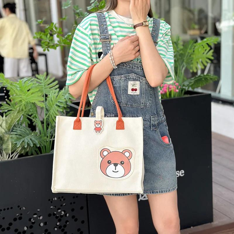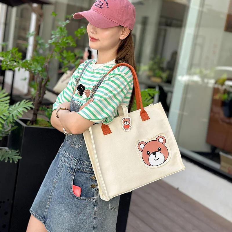 Холщовые сумки женские новые роскошные дизайнерские брендовые модные милые большие вместительные портативные сумки через плечо сумки-тоут с изображением мультфильмов