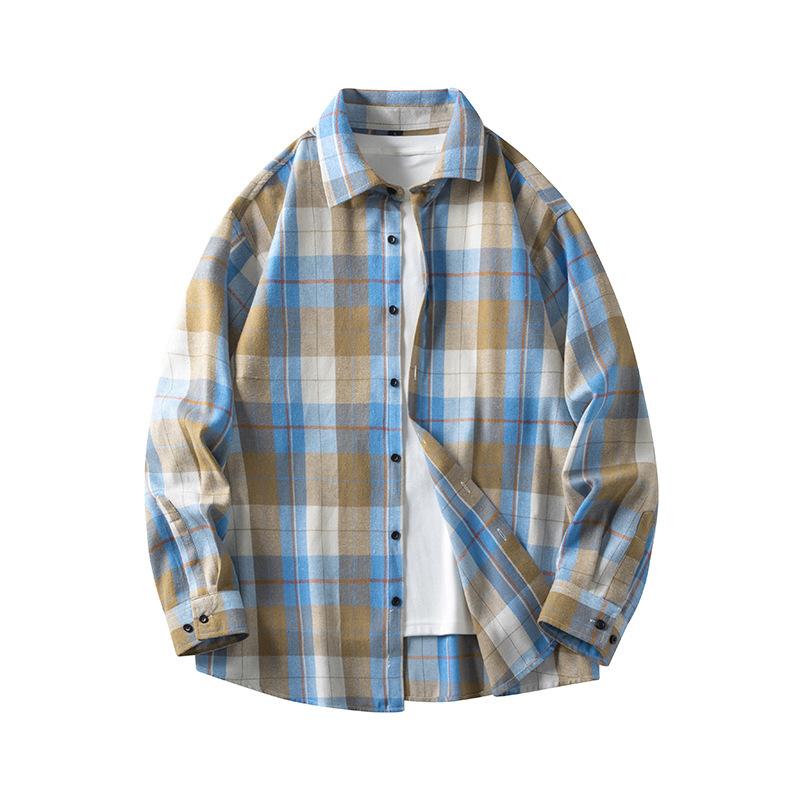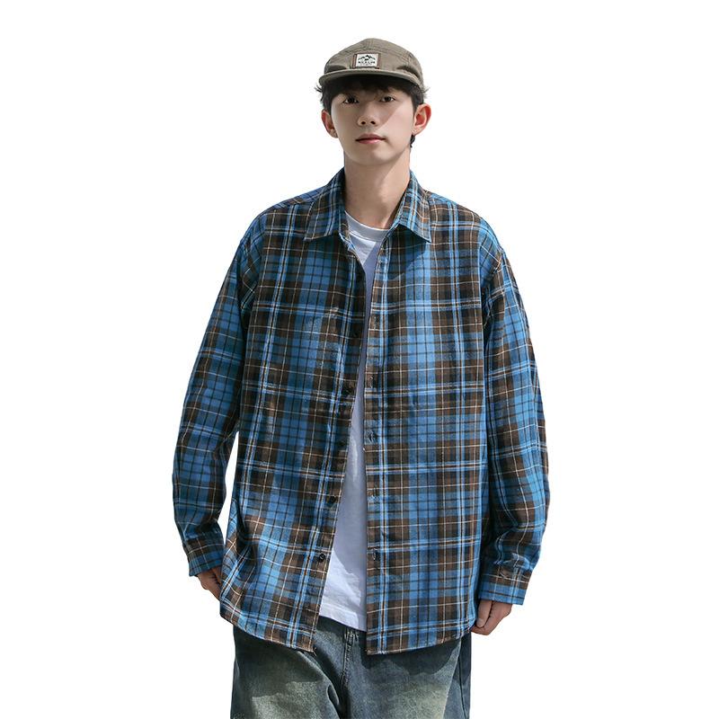 Осенняя модная простая контрастная цветная мужская клетчатая рубашка, корейская версия модной повседневной мужской рубашки с длинными рукавами