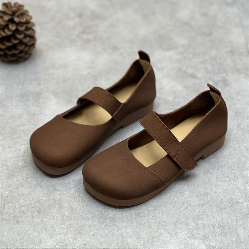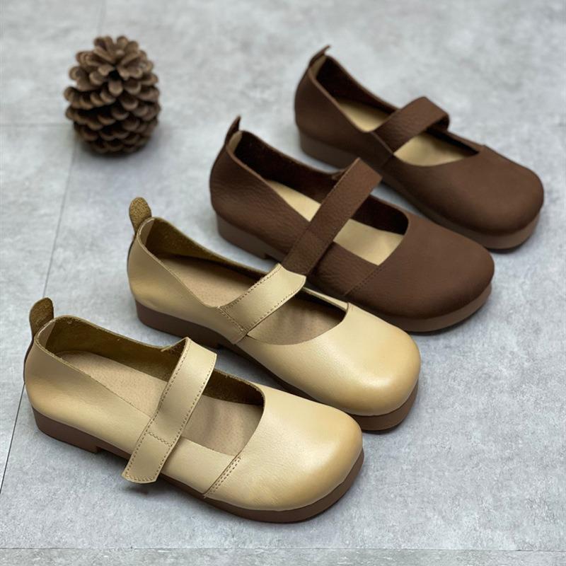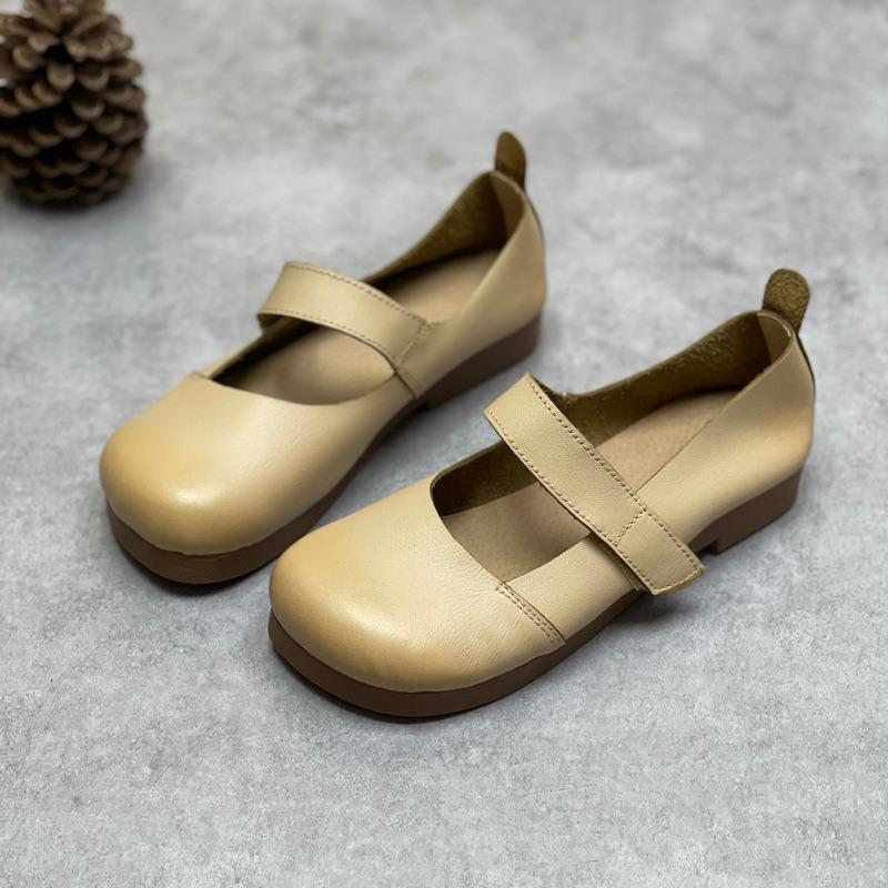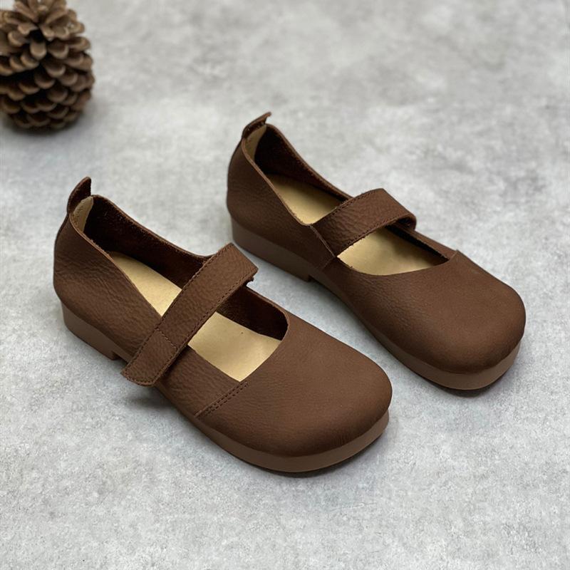 Весенние и летние туфли из коровьей кожи с круглым носком, повседневные женские туфли на мягкой подошве из кожи