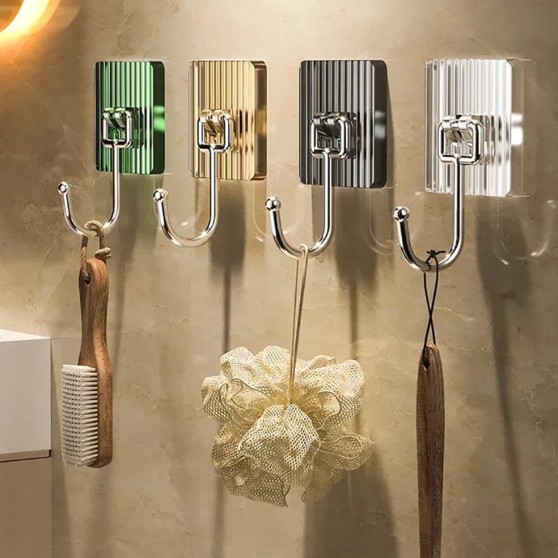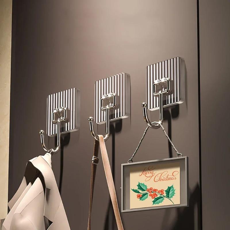 Роскошные крючки из нержавеющей стали для кухни и ванной комнаты, неперфорированный металлический крючок, прочный, не оставляющий следов, самоклеящийся крючок для подвешивания на дверь