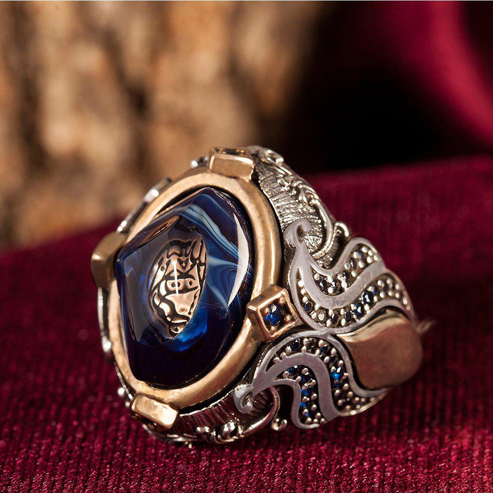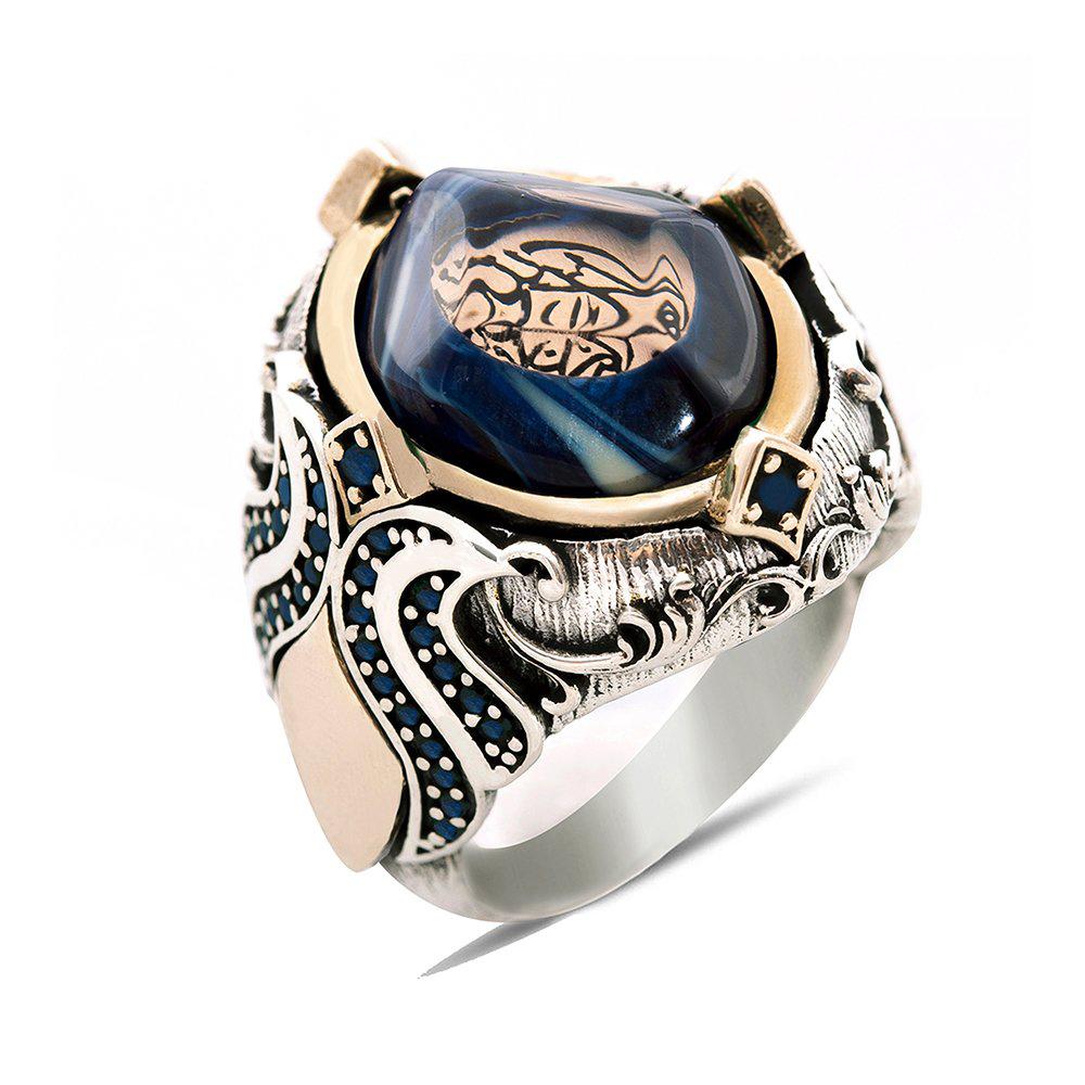 Ла Галиб Иллаллах Язылы Кехрибар Ташлы 925 Аяр Гюмюш Эркек Юзюк