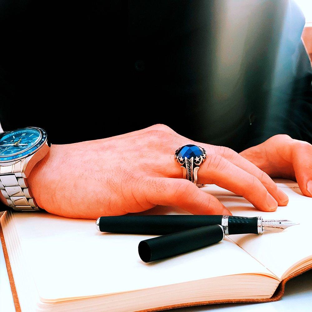 Parlement Mavisi Zirkon Taşlı Ayyıldızlı 925 Ayar Gümüş Yüzük