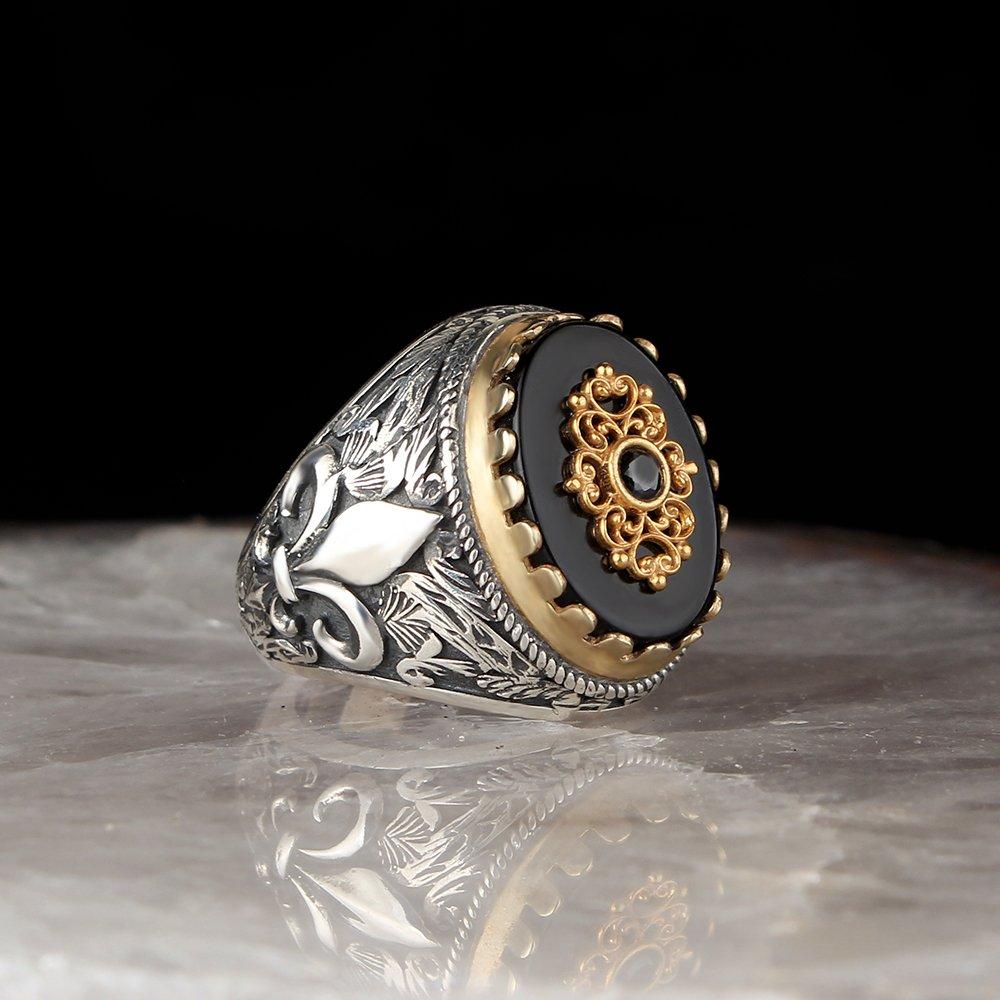 Kalem İşçilikli Oniks Taşlı Gümüş Yüzük — купить товар онлайн с бесплатной доставкой до всему миру!