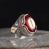 Osmanlı Savaş Sancağı Kehribar Taşlı 925 Ayar Gümüş Yüzük