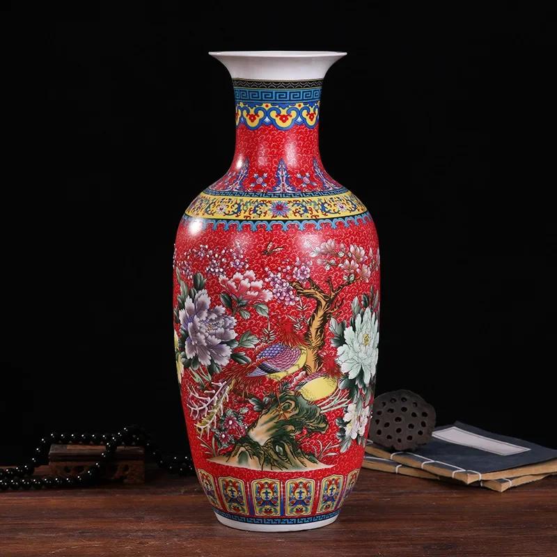 Керамическая ваза Цзиндэчжэнь эмалированная бамбуковая ваза для водных цветов, гостиная, современное украшение для бутылок, большая