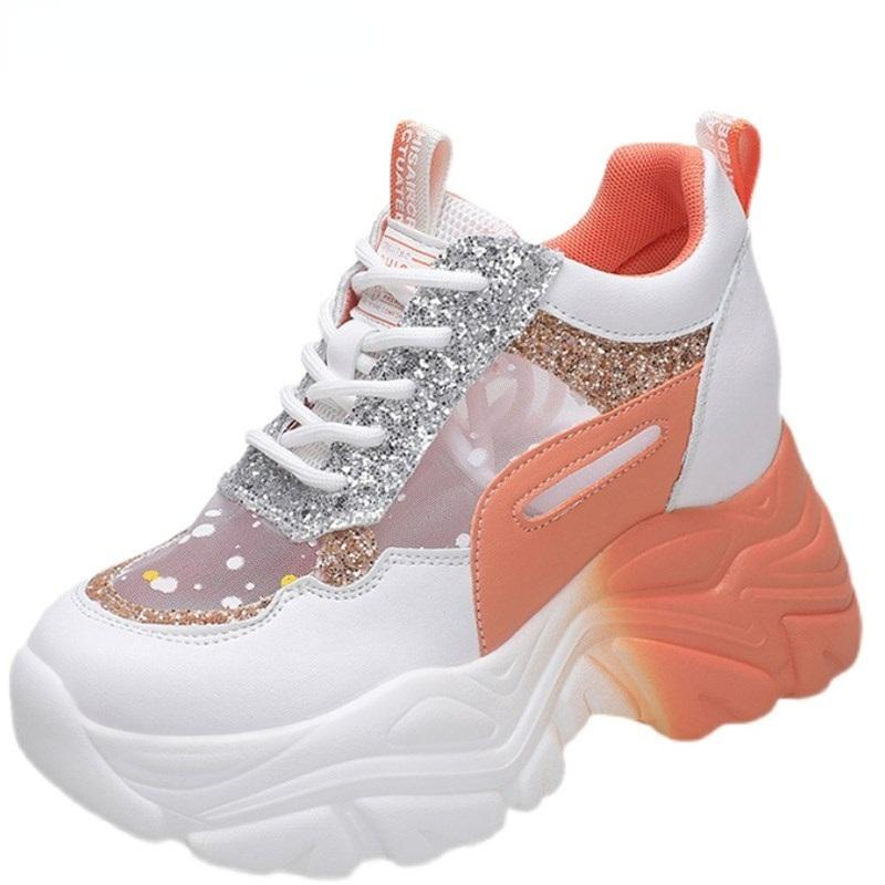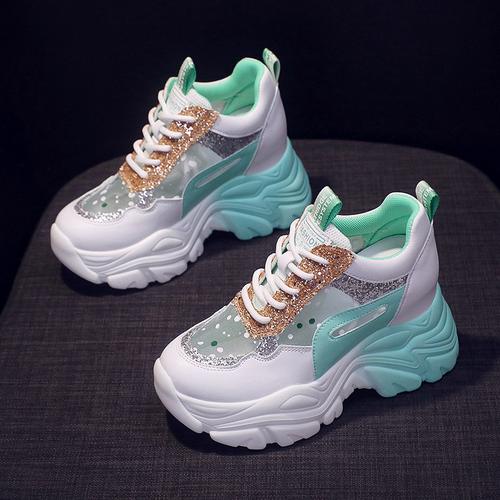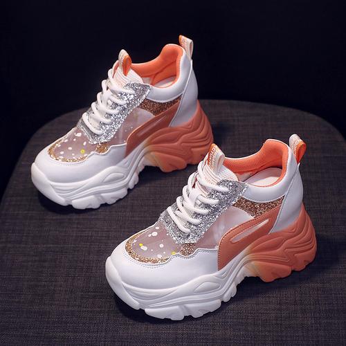 Женские кроссовки на толстой подошве, повседневная обувь из дышащей сетки, туфли на танкетке высотой 9 см, туфли на платформе, женские спортивные туфли для папы