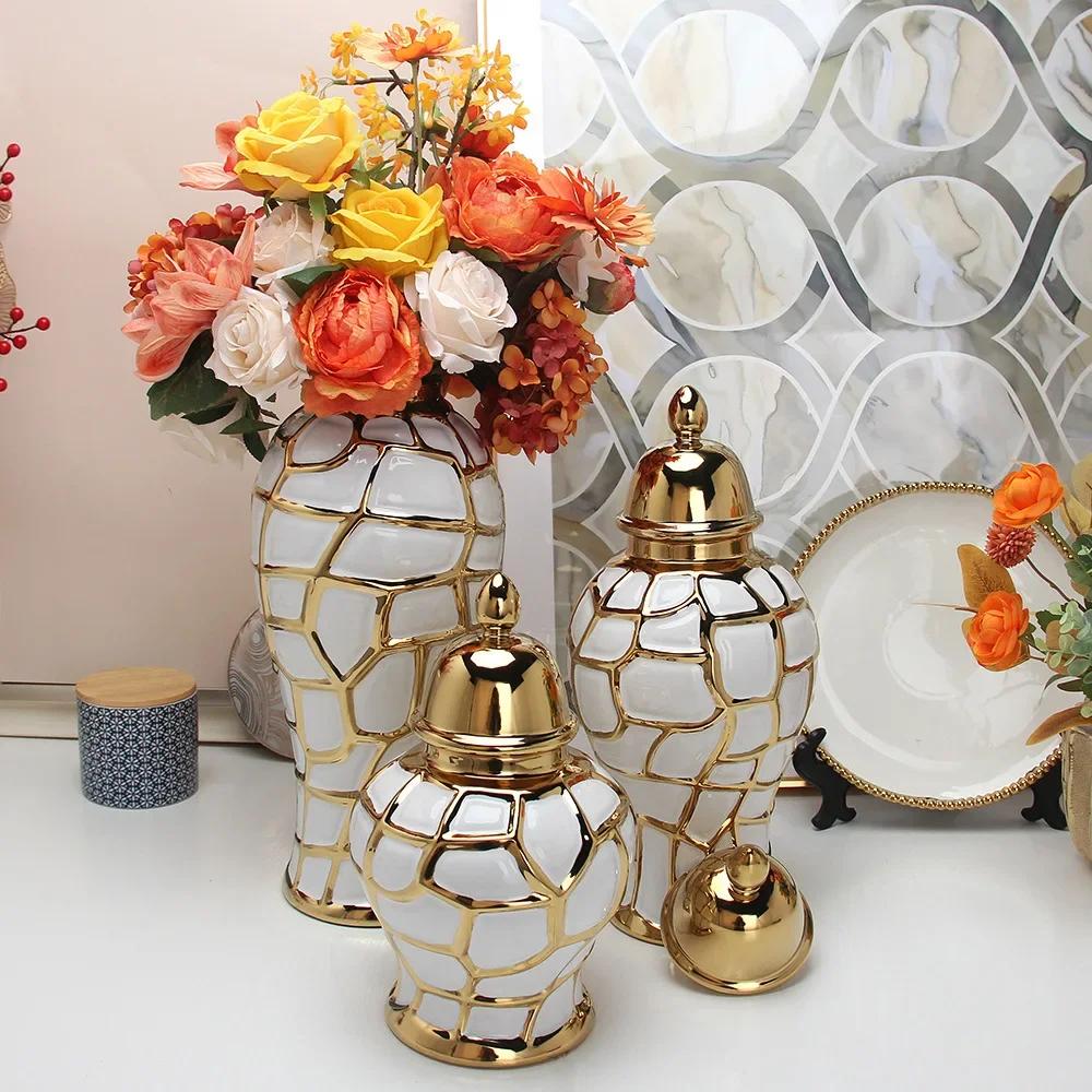 Керамическая банка общего назначения, банка для имбиря ручной работы, золотая сетка, фарфоровая банка для хранения конфет, декоративная ваза для украшения дома