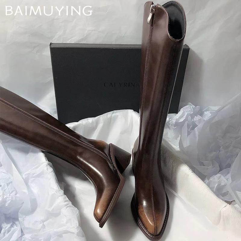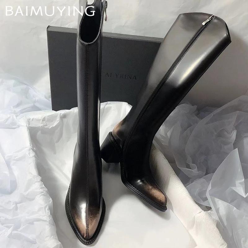 Остроносые женские высокие сапоги из кожи, массивные, модные, сексуальные, на высоком каблуке, 2025, трендовые, готические, гладиаторские туфли-лодочки, зимние, новые, Botas Mujer