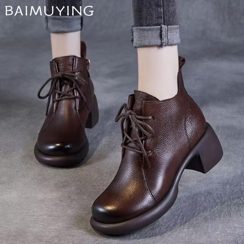 Кожаные женские ботильоны на шнуровке, дизайнерские туфли на среднем каблуке 2025 года, трендовые ретро-туфли на толстой подошве, классические оксфордские туфли, зимние ботинки Botas De Mujer — купить товар онлайн с бесплатной доставкой по всему миру!