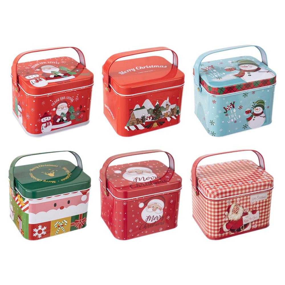 Рождественские формочки для печенья, прямоугольная рождественская жестяная коробка, конфетница, декоративные маленькие контейнеры для еды, 6 рождественских банок для конфет