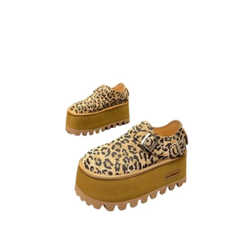 Женские туфли на плоской подошве с леопардовым принтом на платформе, замшевые повседневные модные лоферы, женские кроссовки, тренд 2024 года, новая осенняя удобная обувь для ходьбы