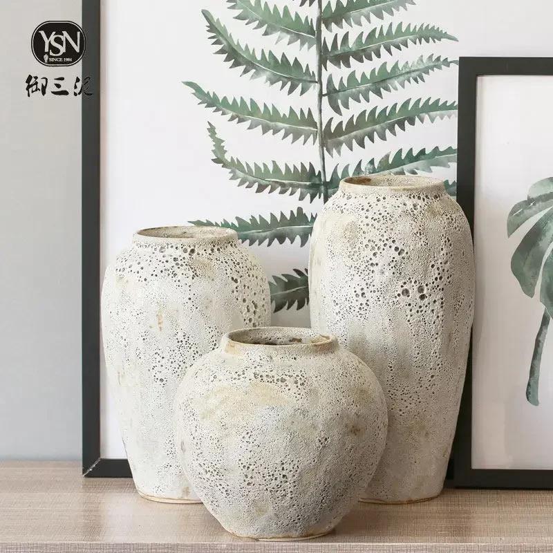 Простая ретро-керамическая ваза большого размера, европейская грубая антикварная старая цветочная композиция, контейнер, декоративные украшения, подарок на день рождения