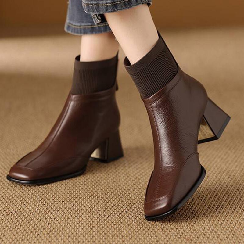 Кожаные массивные женские ботильоны на щиколотке, квадратный носок, модная обувь на среднем каблуке, тренд 2025, элегантные туфли-лодочки, зимняя классика, готические ботильоны для женщин