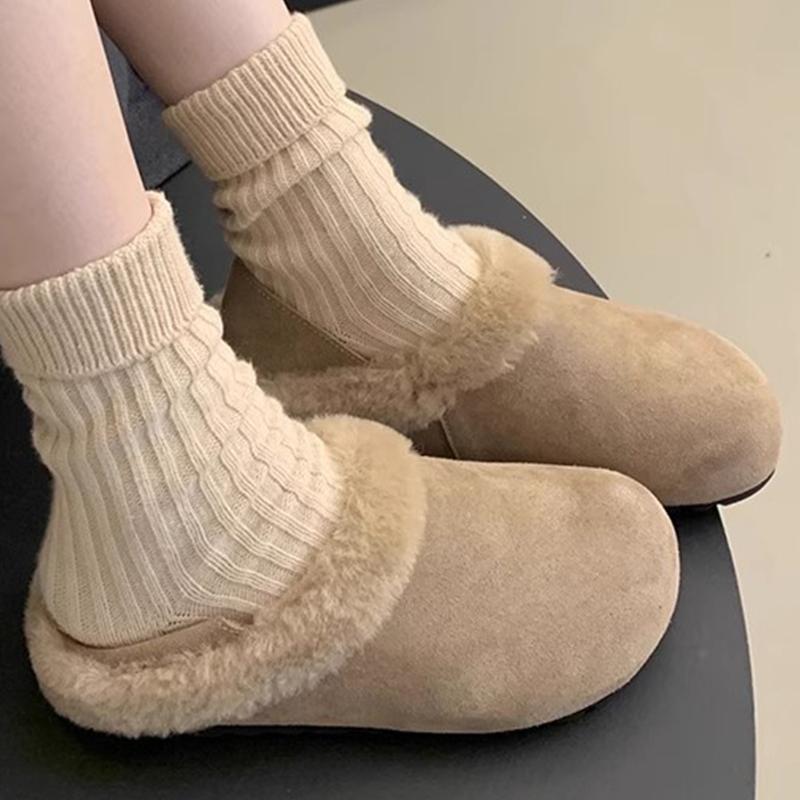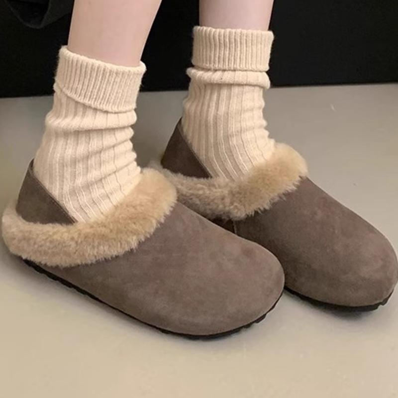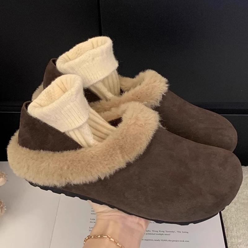 Меховые женские хлопковые тапочки зимняя мода мюли обувь удобные повседневные туфли с открытой пяткой женские 2025 трендовый бренд теплые женские зимние ботинки