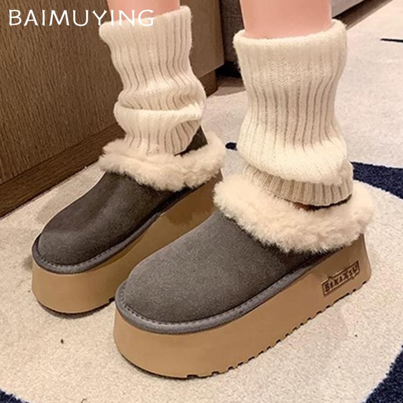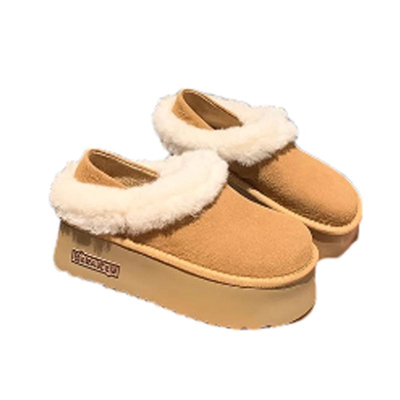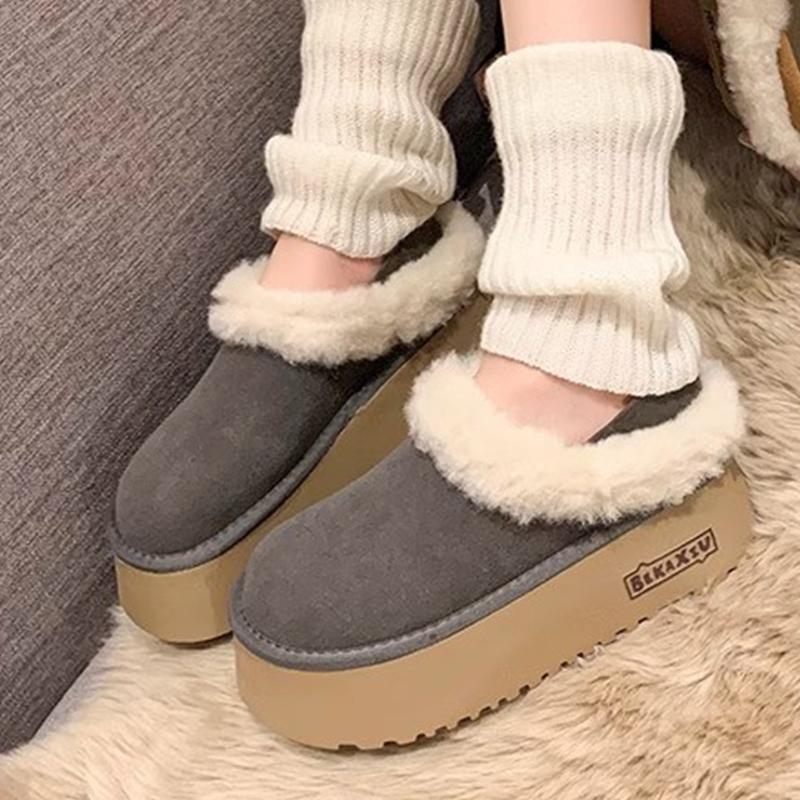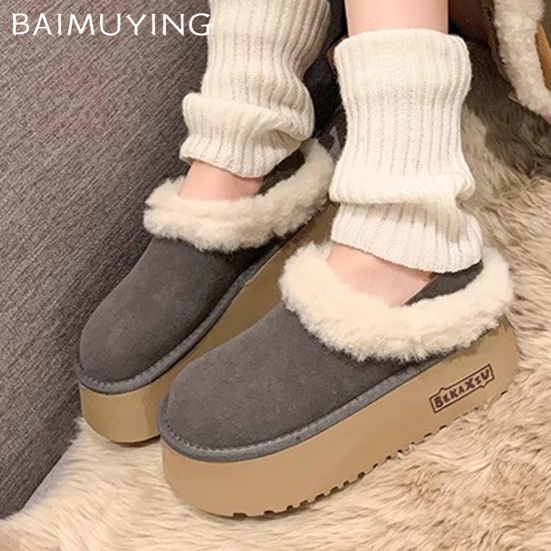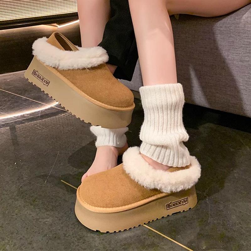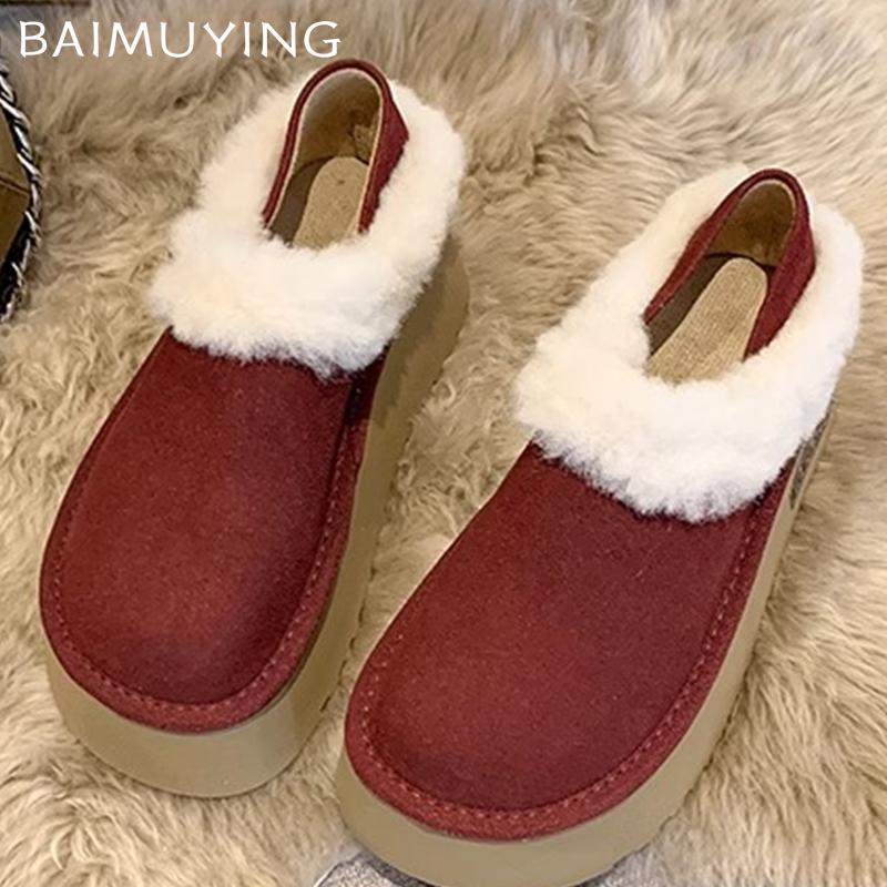 Меховая платформа Женские хлопковые тапочки Замшевые балетки Мюли Зимняя мода Ботильоны с ремешком на пятке Женский тренд 2025 Теплые Женские Зимние Ботинки