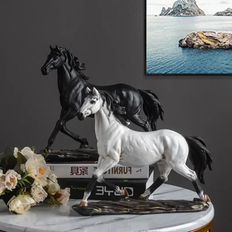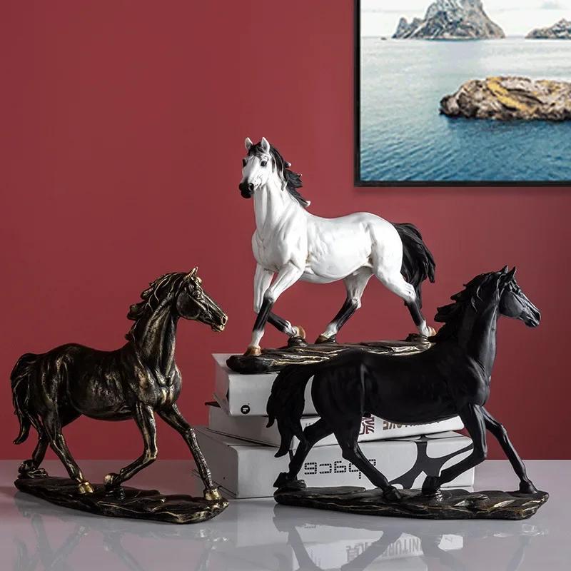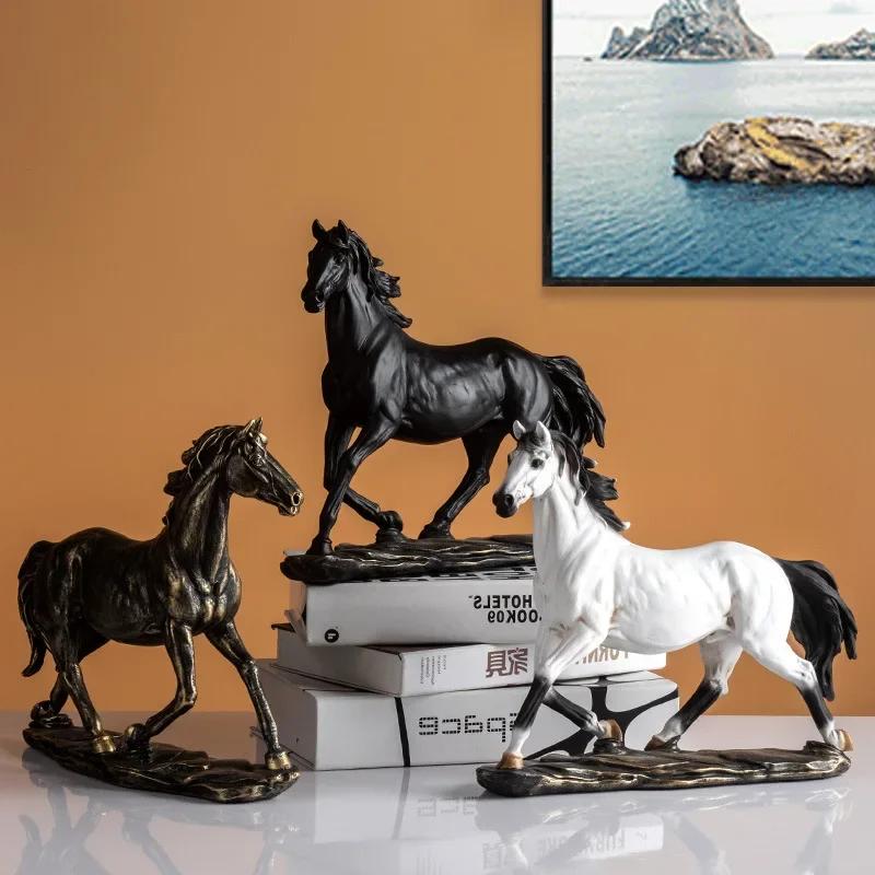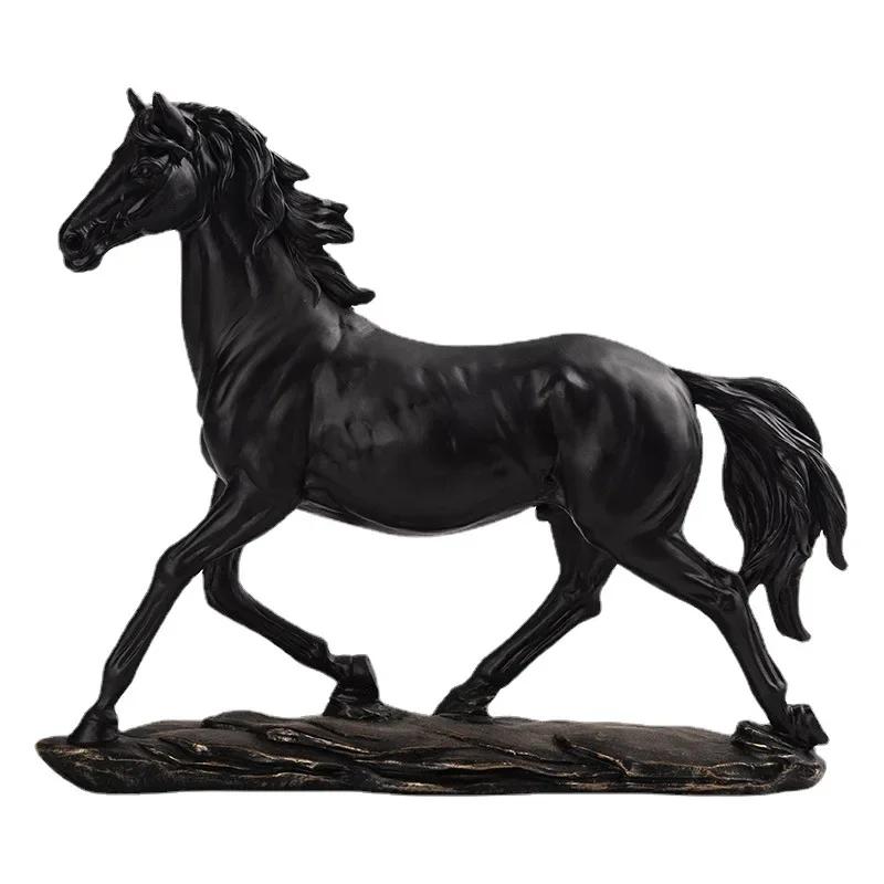 Бронзовая скульптура лошади из смолы в стиле ретро, украшение стола для интерьера комнаты, статуэтка и фигурка животного, домашний декор, аксессуары для кабинета